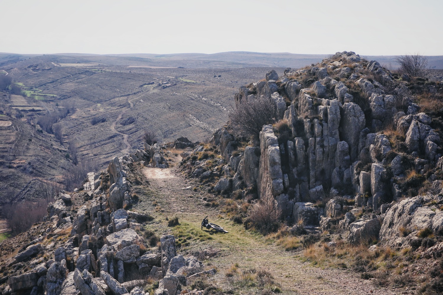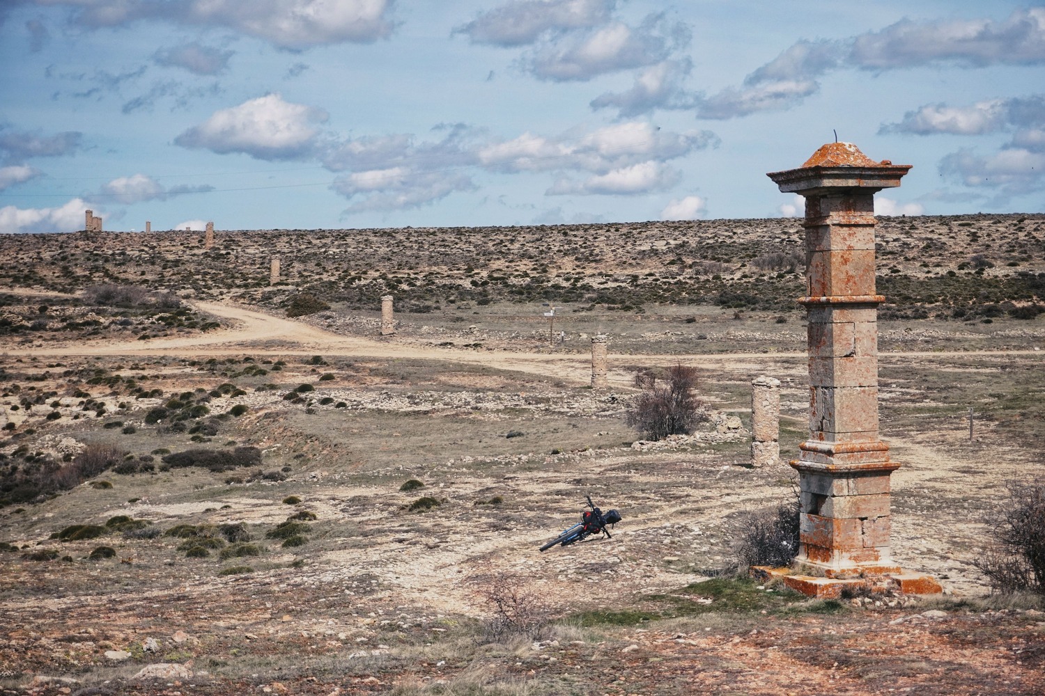 Las Parameras de las Tierras Altas. Sin duda uno de los platos fuertes de la ruta. Atravesar este enorme “vacío” desde Aguilar del Alfambra hasta El Pobo te traslada a lugares remotos del planeta, pero sobre todo a lugares remotos de tí mismo: es toda una experiencia recorrer en solitario un lugar en el que no ves nada en kilómetros y kilómetros a la redonda, un enorme tesoro en nuestros días. No encontrarás agua aquí arriba, puede azotar el viento de forma fuerte, y el camino, aunque en buen estado y sin dificultad técnica puede minar tu moral por el traqueteo constante, sobre todo si ya estás cansado después de un largo día de pedaleo. Imprescindible subir a la cima del Hoyalta, el punto más alto de esta Sierra del Pobo en la que nos encontramos, con 1760m. Las vistas en 360º desde allí no te dejarán indiferente.