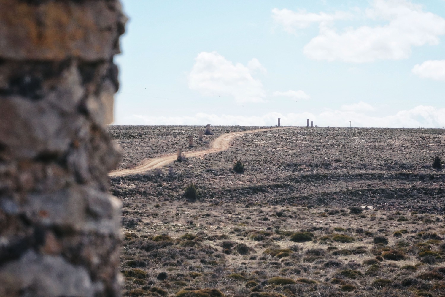 Camino de los Pilones. Una vez en Allepuz y después de un buen almuerzo en Casa Paquita (imprescindible), la ruta recorre uno de los tramos del Camino de los Pilones: una impresionante vía de comunicación para el comercio de la lana, formada en su día por cientos de monolitos lo suficientemente distanciados para poder ser visibles durante los inviernos aunque la nieve o la niebla cubriera estas montañas. Fue usado desde finales de la Edad Media para el transporte de tejidos de lana desde estos pueblos hasta el Maestrazgo de Castellón.
