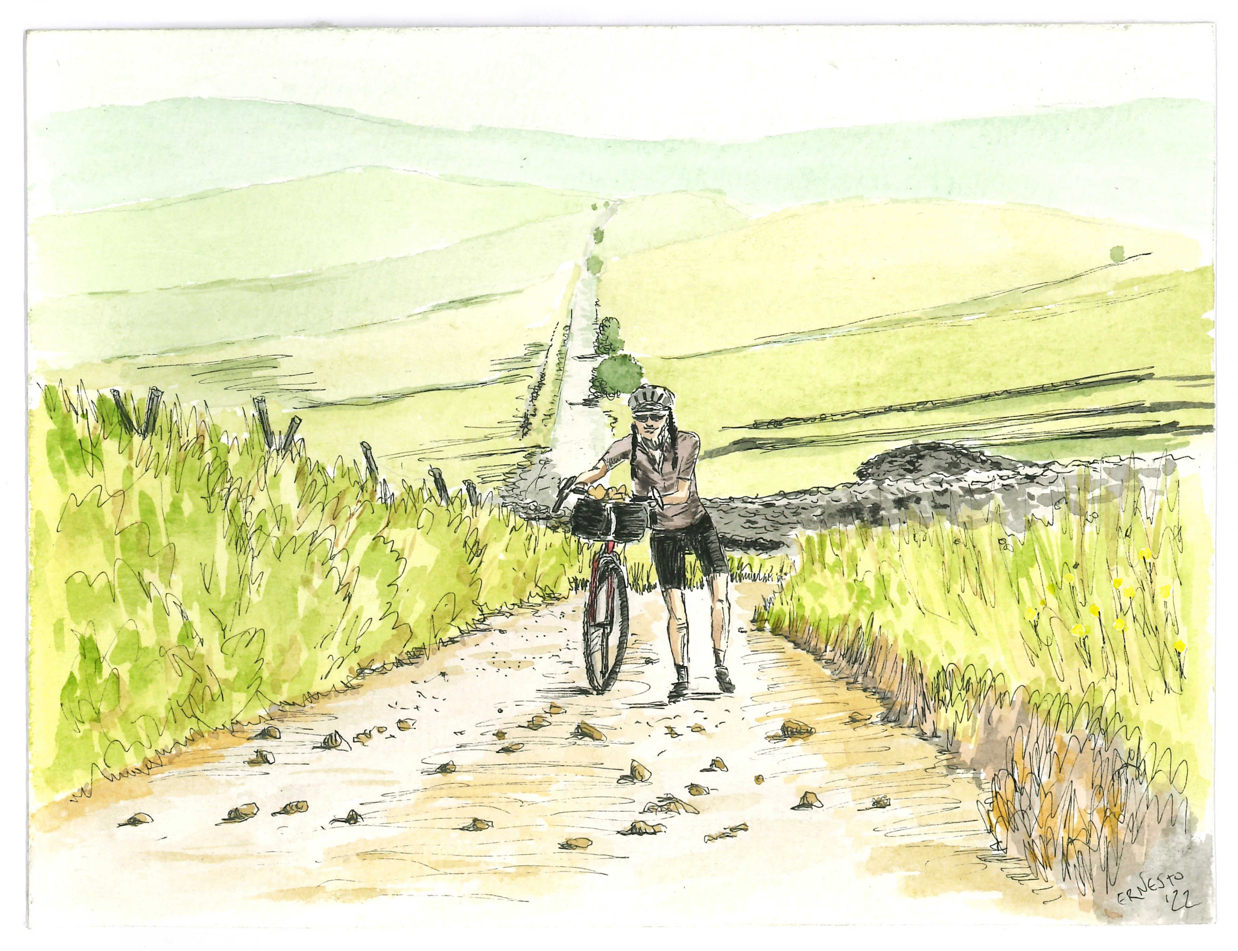 AUGH – Umbria Bikepacking. Acuarela basada en una foto de @paolopennimartelli para @alventomagazine