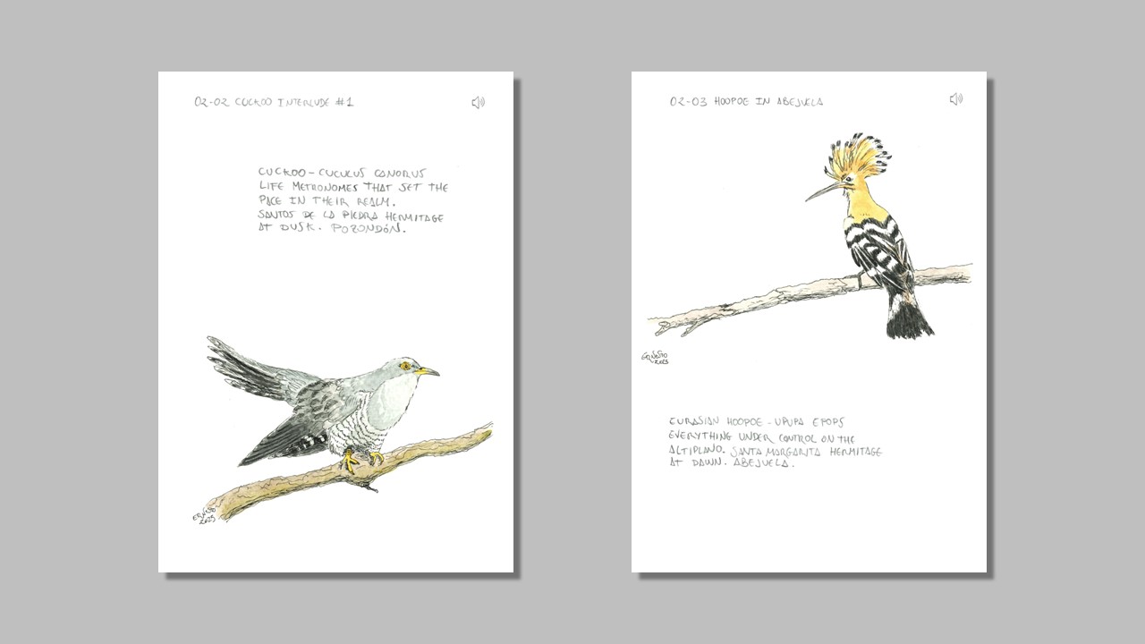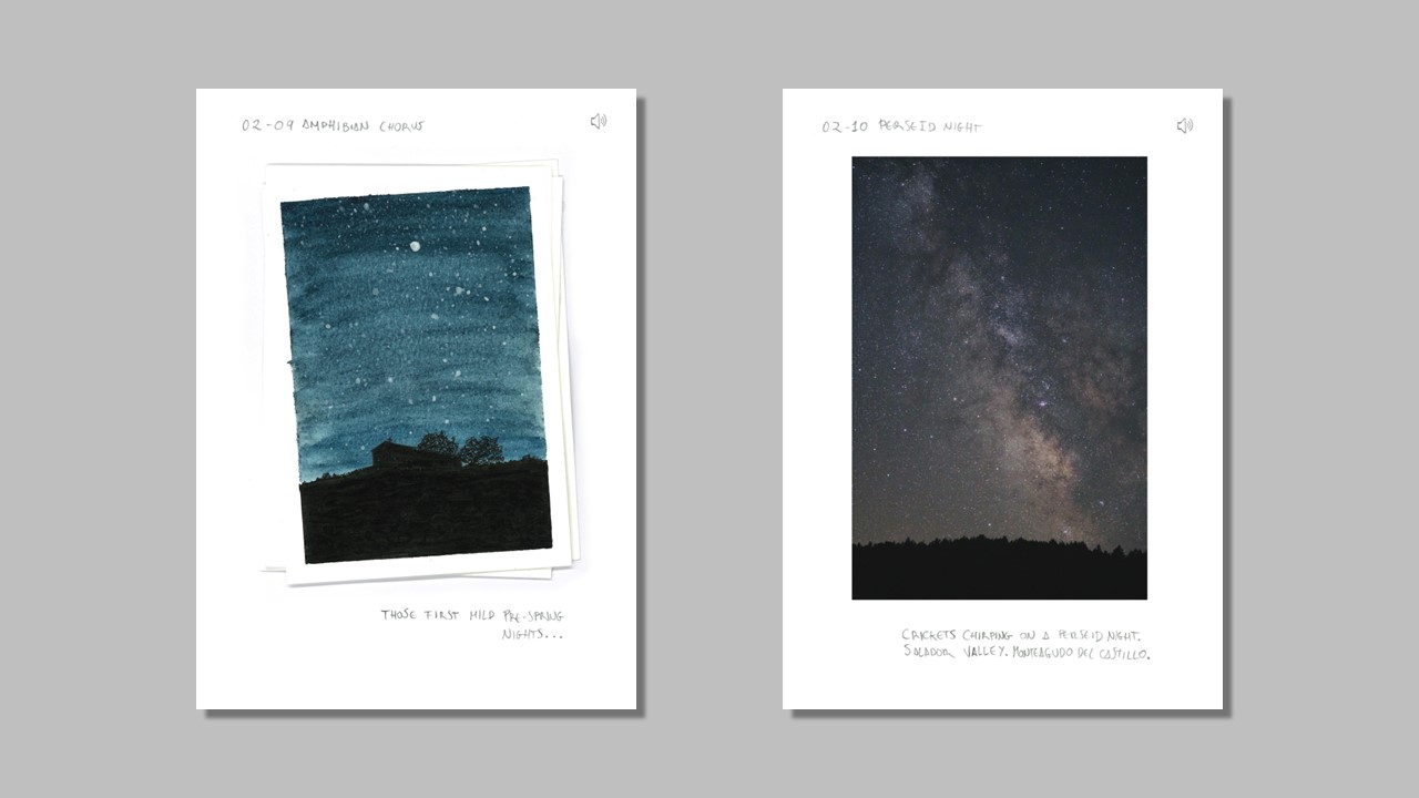 In the first of these volumes, Landscapes, I gather some of the most representative and valuable acoustic environments of Montañas Vacías. In the second, Life, I showcase some of the region’s characteristic species—the key players in any traveler’s experience. And finally, in Traces, I reveal details, textures, and nuances that offer a deeper understanding of this land and our connection to it.