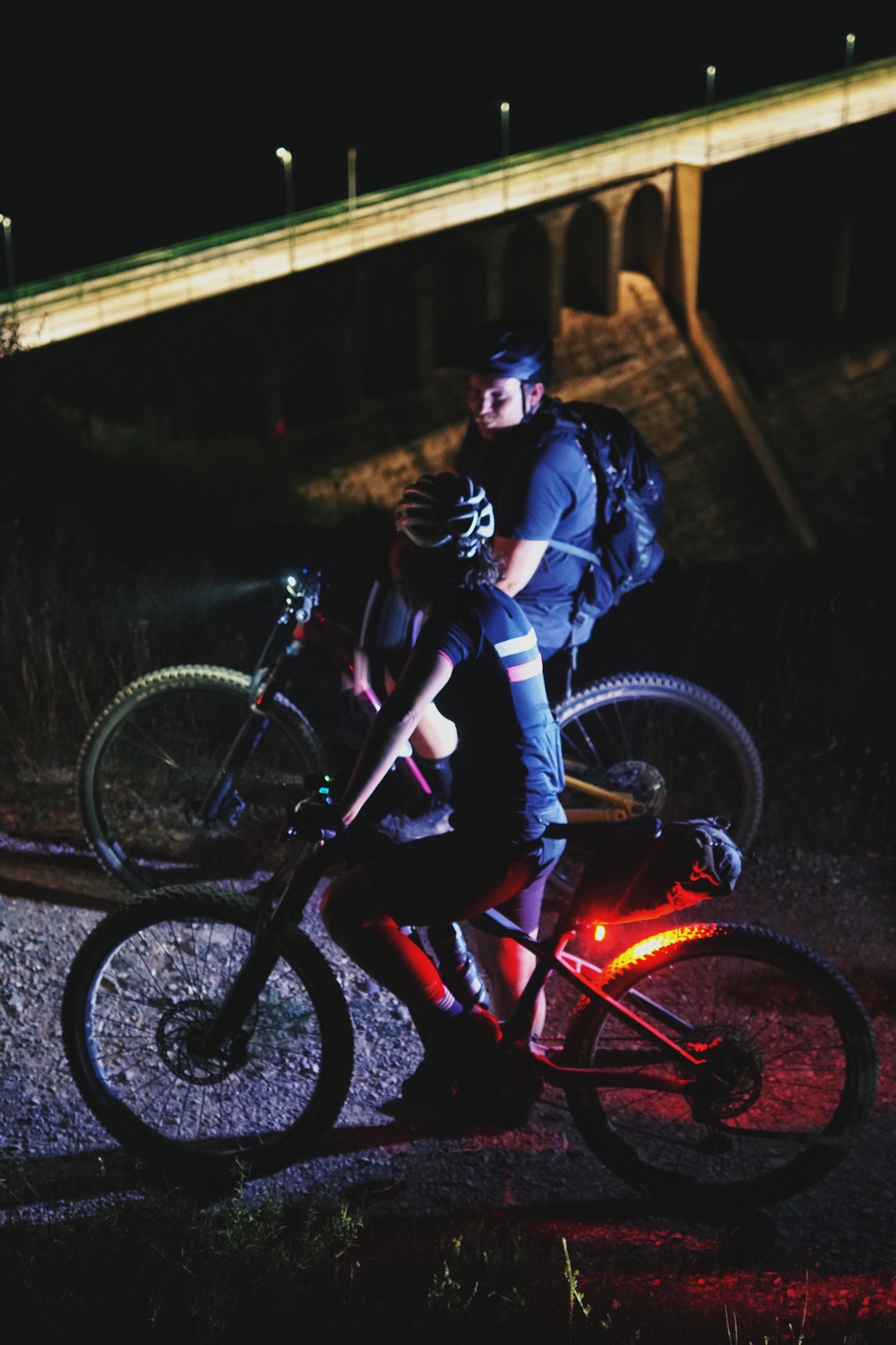 - Imprescindible llevar luces delantera y trasera. También es aconsejable una luz frontal, por si hace falta luz de repuesto y alguna prenda reflectante, por si acaso.