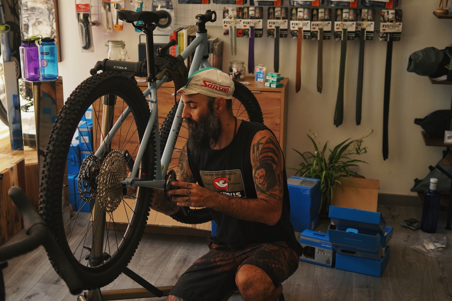 Vengo de un aprendizaje muy autodidacta, de años reparando con pocos recursos todo tipo de bicis, observando mucho, aprendiendo de grandes amigos mecánicos e intentando mejorar cada día. En esta industria donde todo es material de última generación, renovar la bici cada año y productos con fecha de caducidad, Surya se desmarca totalmente de esta idea. Sabemos y creemos que existe otro modelo de consumo y el taller es la mejor muestra de ello. Trabajos como el mantenimiento y actualización de bicicletas clásicas es una de nuestras mayores satisfacciones como taller. Además, ofrecemos montajes a la carta para aquellos clientes que como nosotros siempre han buscado una bicicleta especial, única y sobre todo duradera, que las grandes marcas no ofrecen, porque consideramos que cada ciclista tiene unas necesidades únicas. Hablar con el cliente para entender realmente sus necesidades e intenciones es crucial para mí, así que ya sabes, llámanos o si estás por Teruel pásate a echar un cafecico y seguro puedo ayudarte con ese proyecto o modificación que tienes en mente por loco que sea!