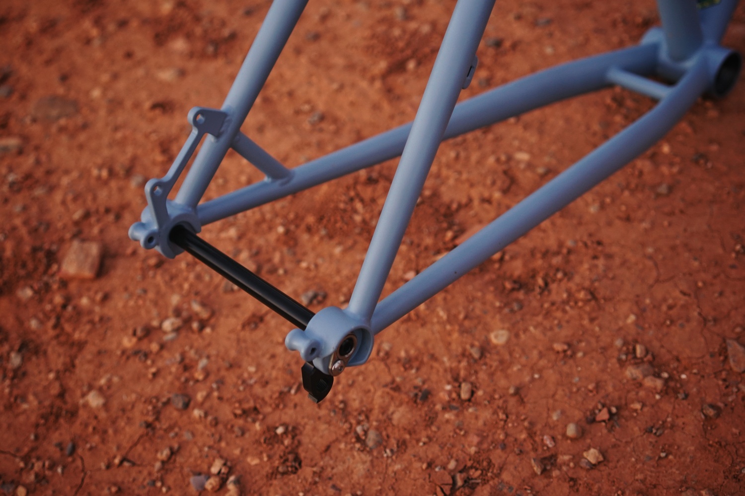En MontañasVacías predominan caminos y senderos que en ocasiones tienen piedra suelta, hay pistas lisas, algunas más rotas y también tramos de carretera; por lo tanto y siguiendo la filosofía de «ciclismo sin prisa» optamos por la elaboración de un cuadro y horquilla que absorbiera las imperfecciones del terreno con buena capacidad de carga y que la posición fuese muy cómoda, pero que no lastrara a la hora de rodar a velocidades mayores. Una buena distancia entre ejes para dar estabilidad y confort. Un buen paso de rueda, para montar si es necesario un buen balón, pero que no nos dificulte en los tramos de enlace por carretera.